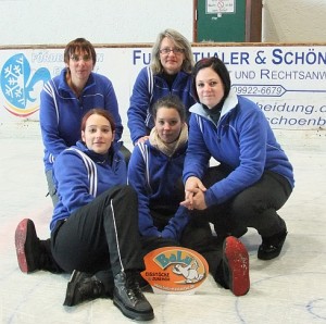 Knapp verpasst haben am Wochenende die Eisstock-Damen des RSV Büblingshausen die Qualifikation zum Europacup in Eppan Berg (Südtirol). Beim Deutschen Eispokal in Regen, wo die besten 26 Damen Teams Deutschlands um die vier freien Plätze kämpften, belegten Andrea, Ann-Kathrin und Melanie Rink sowie Rebecca Jüngel und Helga Fink den undankbaren fünften Platz. In der Vorrunde setzte man sich in der Spitzengruppe fest, die drei Spiele vor Schluss noch aus fünf punktgleichen Mannschaften bestand. Lediglich der SV Mehring lag mit zwei Punkten Vorsprung in Front, den sie auch bis zum Schluss verteidigten. Jetzt blieb den punktgleichen Mannschaften nur noch ein Halbfinalplatz, der die Qualifikation bedeutete. Der RSV und die ESG Füssen konnten die letzten drei Spiele gewinnen und blieben aus der Spitzengruppe übrig. Leider gelang es den RSV´lerinnen nicht, die Stockquote in den letzten Spielen entscheidend zu verbessern, so dass die ESG Füssen hinter dem SV Mehring den Platz 2 erreichte. Für den RSV blieb nur der undankbare dritte Platz und das Spiel um Rang 5 gegen den Dritten der Gruppe A.