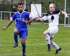 Selten konzentriert und fokussiert präsentierte sich die RSV-Reserve im B-Liga-Spitzenspiel beim TSV Steindorf. Die Jungs waren „heiß“! Und so trat man auch auf, spielte den TSV förmlich an die Wand und lag zur Halbzeit bereits mit zwei Toren vorne (was laut TSV-Berichterstatter für die Gastgeber noch schmeichelhaft war). Das Foto links zeigt Ex-TSV-Akteur Senayi Aktas, der den RSV mit 1:0 in Front schoss.