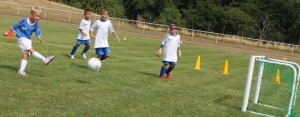 Auf dem täglichen fast fünf Stunden dauernden Übungsprogramm standen Schusstraining, Geschicklichkeit, Koordination sowie Ballsicherheit und natürlich jede Menge Spaß im Vordergrund. So wurde unter anderem auch mittels einer Speed-Check-Anlage ermittelt, welcher der jungen Kicker den härtesten Schuss hat. Der zweite Trainingstag endete mit einem sehr interessanten Turnier. Die drei Mädchen und 45 Jungs erhielten Spielernummern, welche sie für den gesamten Turnierverlauf behielten. Auf fünf Feldern wurde in kleinen Teams mit jeweils unterschiedlicher Mannschaftseinteilung gegeneinander gekickt. Tore, welche durch die 15 jüngsten Spieler erzielt wurden dreifach, bei den etwas älteren doppelt und bei den großen Jugendspielern einfach gewertet. Hierdurch entstand ein tolles Zusammenspiel von „Groß mit Klein“.