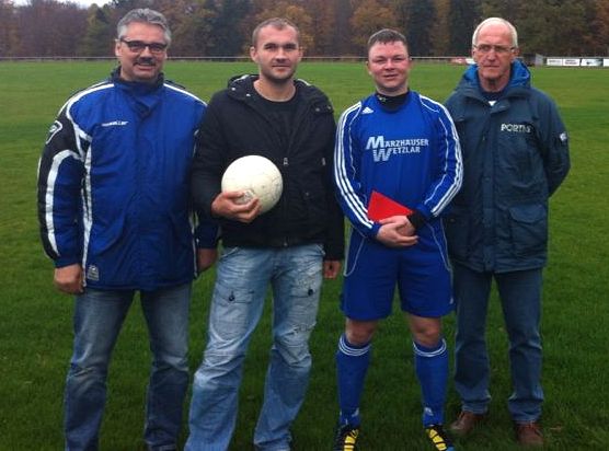 Vor dem Heimspiel gegen die SG Nauborn/Laufdorf überreichten der Vorsitzende Dieter Schulz sowie Spielausschussobmann Markus Klaus kleine Präsente an die beiden Aktiven.