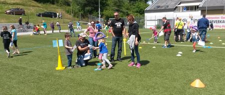 Die kleinen Gäste konnten sich den ganzen Tag über bei unterschiedlichsten Aktivitäten die Zeit vertreiben: So gab es eine Hüpfburg, Ballonmodellieren, Airbrush-Tattoos und eine große Kinderolympiade (Foto). Auf mehreren Kleinfeldern fanden Kinder- und Jugendfußballturniere statt.