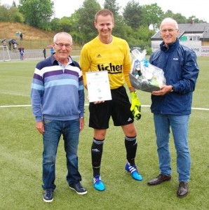 Beliebtheit. Die Rede ist von Joachim Netsch, sicher einem der besten Keeper nicht nur in der Kreisoberliga. Der Vorstand um Wolfgang Vogt und Dieter Schulz nahm dieses Jubiläum nun zum Anlass, „Jo“ mit einem Präsentkorb zu beschenken.