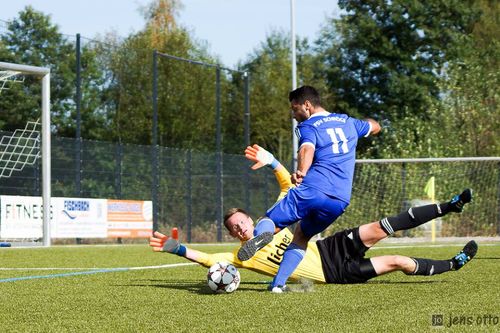 Erst im zweiten Abschnitt wurde die Begegnung einseitiger. Der für Stürmer Andreas Schoch in die Anfangsformation gerückte Marcel Schmitt wurde nach 49 Minuten Nutznießer einer präzisen Ademi-Flanke, die er zum 2:0 im Netz unterbrachte. Auch nach etwas mehr als einer Stunde funktionierte das Zusammenspiel der beiden Schröcker Torschützen glänzend. Ademi bediente Schmitt erneut – und dieser hatte keine Mühe, zum vorentscheidenden 3:0 einzuschießen. Büblingshausen wehrte sich zwar weiter tapfer, war den Gastgebern jedoch unterlegen. Die Heim-Elf vom Elisabethbrunnen ließ den Ball jetzt klug durch die eigenen Reihen laufen und erhöhte nach 83 Minuten durch Ademis zweiten Treffer auf 4:0. Dem vorausgegangen war ein Pass von Ivo Pfalz, den der Albaner nur noch über die Linie zu drücken brauchte. Den Gästen, die insgesamt nicht enttäuschten, gelang nur noch der 1:4-Ehrentreffer durch Ivan Miocevic (85.). Überragend beim RSV einmal mehr Torwart Jo Netsch, der sich häufig allein den Gastgebern in den Weg stellte (Foto).