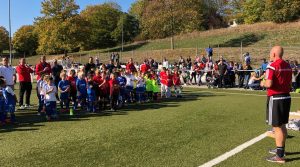 Reges Treiben herrschte am Sonntag auf der Bezirkssportanlage, als etwa 90 Kinder aus acht Vereinen zu einem Turnier im „Funino“-Modus zusammenkamen. Gespielt wird FUNino auf einem etwa 32 x 25 Meter großen Feld mit vier Minitoren und zwei 3er-Teams. Tore können nur innerhalb der 6-Meter Torschusszone erzielt werden, die Teams können beliebig oft ein- und auswechseln beliebig. Insgesamt waren auf dem Kunstarsenplatz der Bezirkssportanlage zwölf Felder aufgebaut, auf sechs spielte die F-Jugend, auf den anderen sechs die G-Jugend.