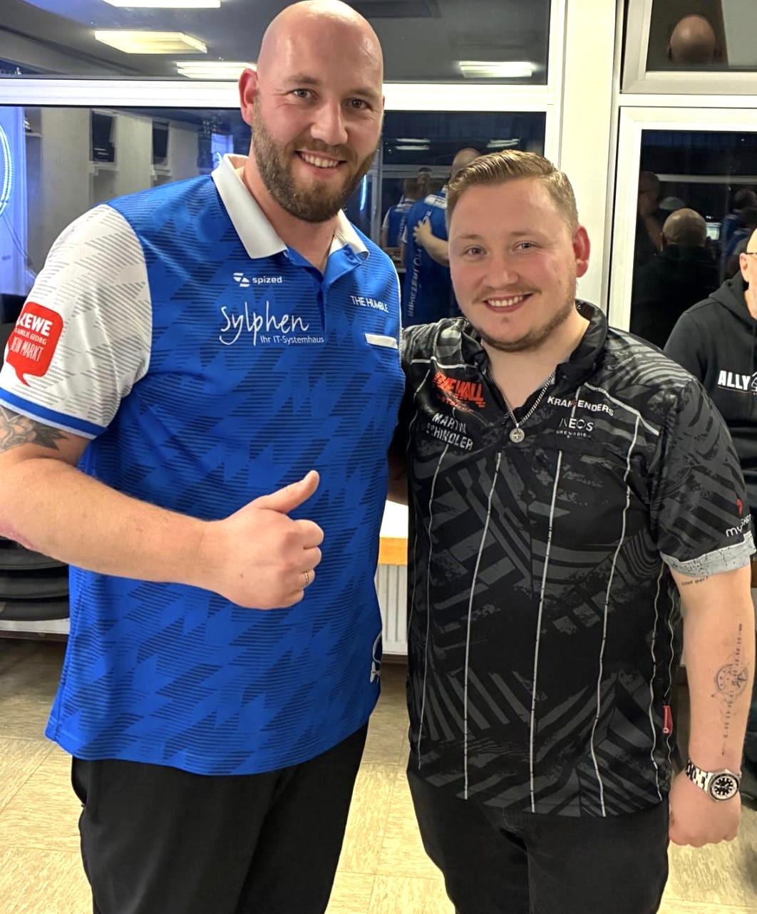 Finest I vs. Rodgau Arrows I 4:8 (2:6): Kommt er oder kommt er nicht? Das war vor Beginn der Partie die alles entscheidende Frage. Um kurz vor 20 Uhr gab es endlich eine Antwort: Ja, er kommt! Die Rede ist von Martin Schindler, Deutschlands Nummer 1 und die aktuelle Nummer 16 der Darts-Weltrangliste. Im Juppy Pally zeigte sich der Wahl-Hesse gut gelaunt, nahbar, freundlich und stets bescheiden. Eine tolle Erfahrung für alle Beteiligten.