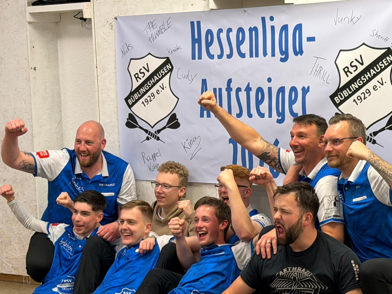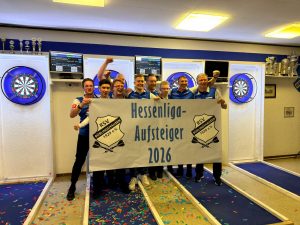 Als um exakt 21.51 Uhr Youngster Tom König den ersten Dart seiner Aufnahme im Doppel gemeinsam mit Teamkapitän Kevin Misgaiski souverän in der Doppel-2 versenkte, war der Jubel im vollbesetzten „Juppy Pally“ groß: Erstmals feiert der RSV die Meisterschaft in der Oberliga Nord/Nordost und steigt damit zum allerersten mal in Hessen höchste Darts-Liga auf!